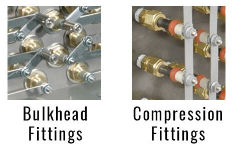 Standard field replaceable elements are held in place with single-screw quick-release “V” clamps. Pressure resistant designs utilizing welded elements, bulkhead fittings, or compression fittings to attach elements to the flange are available to limit leakage of ducted air or gases into the terminal enclosure. Welded elements are used for gas tight applications.