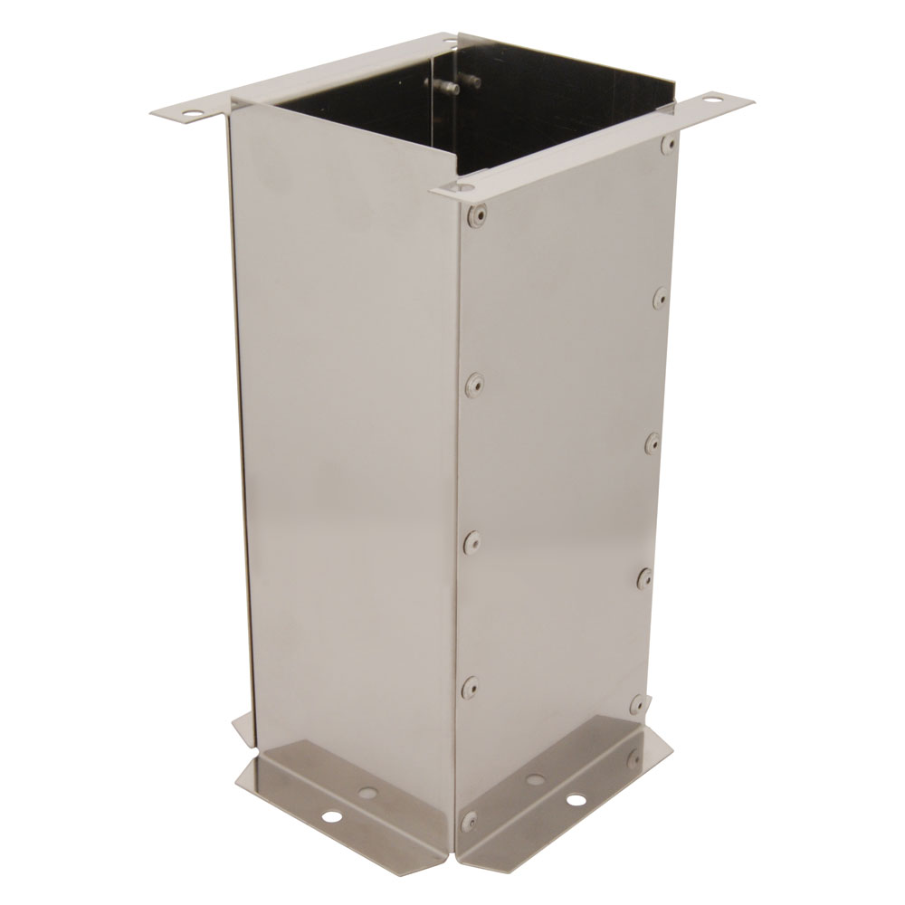 Shroud is hinged on one side and secured with clamps on the other; designed for ease of installation. NOTE: Not available on Cast Aluminum Shrouds.