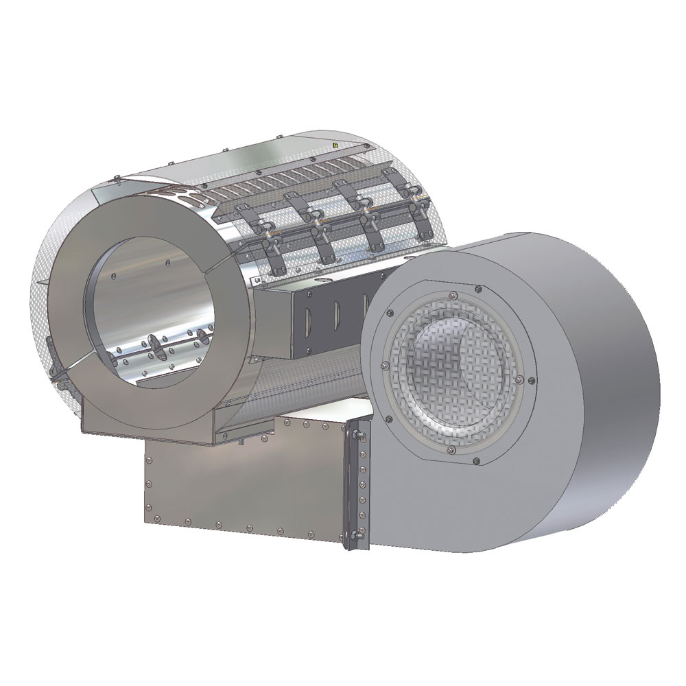 Vertical Blower Extension allows blower to be vertically offset at a distance below the shroud as specified by the customer. Especially useful in retrofit applications.