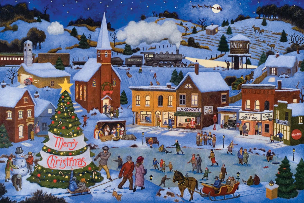 The second painting, Nativity, depicts a Christmas scene in the small town of Nativity. Inspired by the desire to reduce the political correctness that has prompted many to replace the word ‘Christmas’ with ‘Holiday’ in recent years, Fermin commissioned this painting in 2005. He believed that people of every religion should be able to celebrate their important days without others changing their meaning.