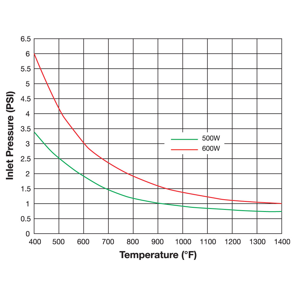 Alloy 304 stainless steel tubing is used to provide high temperature strength and resistance to oxidation up to outlet temperature of 1000°F (538°C). Inlet air or gas temperature up to 250°F (121°C).