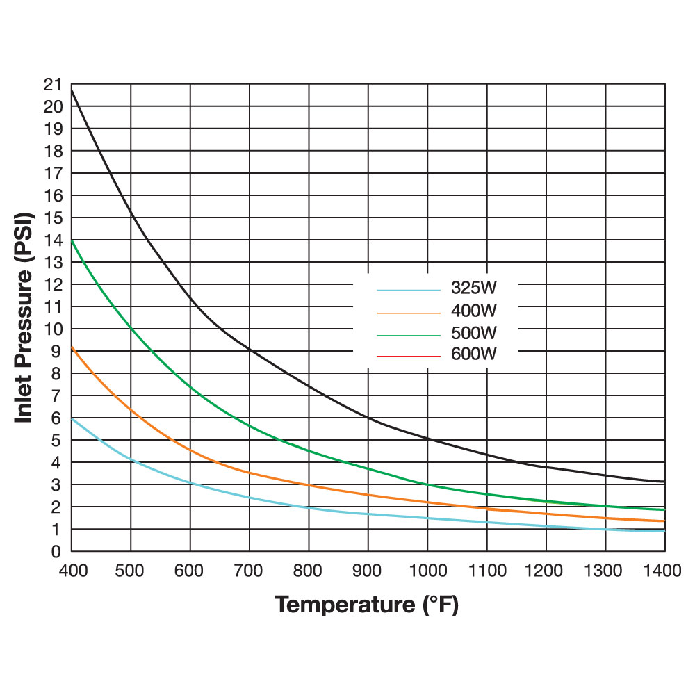 - Inlet air or gas temperature up to 250°F (121°C)