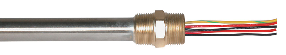The header cap of this heater is an integral part of the fitting; leads exit through small holes that are sealed with epoxy for moisture protection