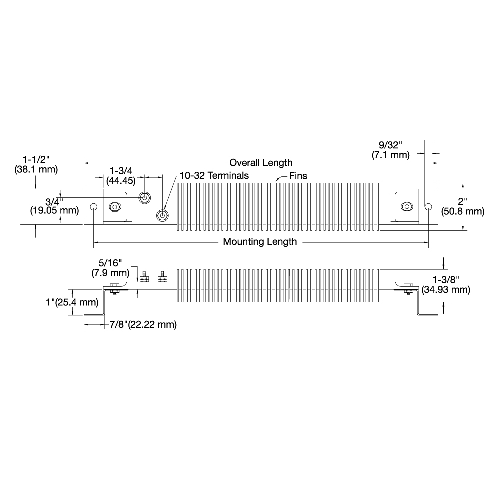 Tempco finned strip enclosure heaters are manufactured with stainless steel sheath and fins and terminated with Type T4: Offset 10-32 Screw Terminals. They are easily installed with special enclosure mounting brackets. See also: Finned Channel Strip Heaters