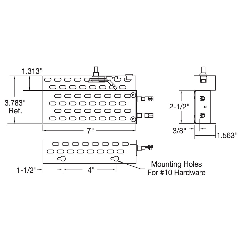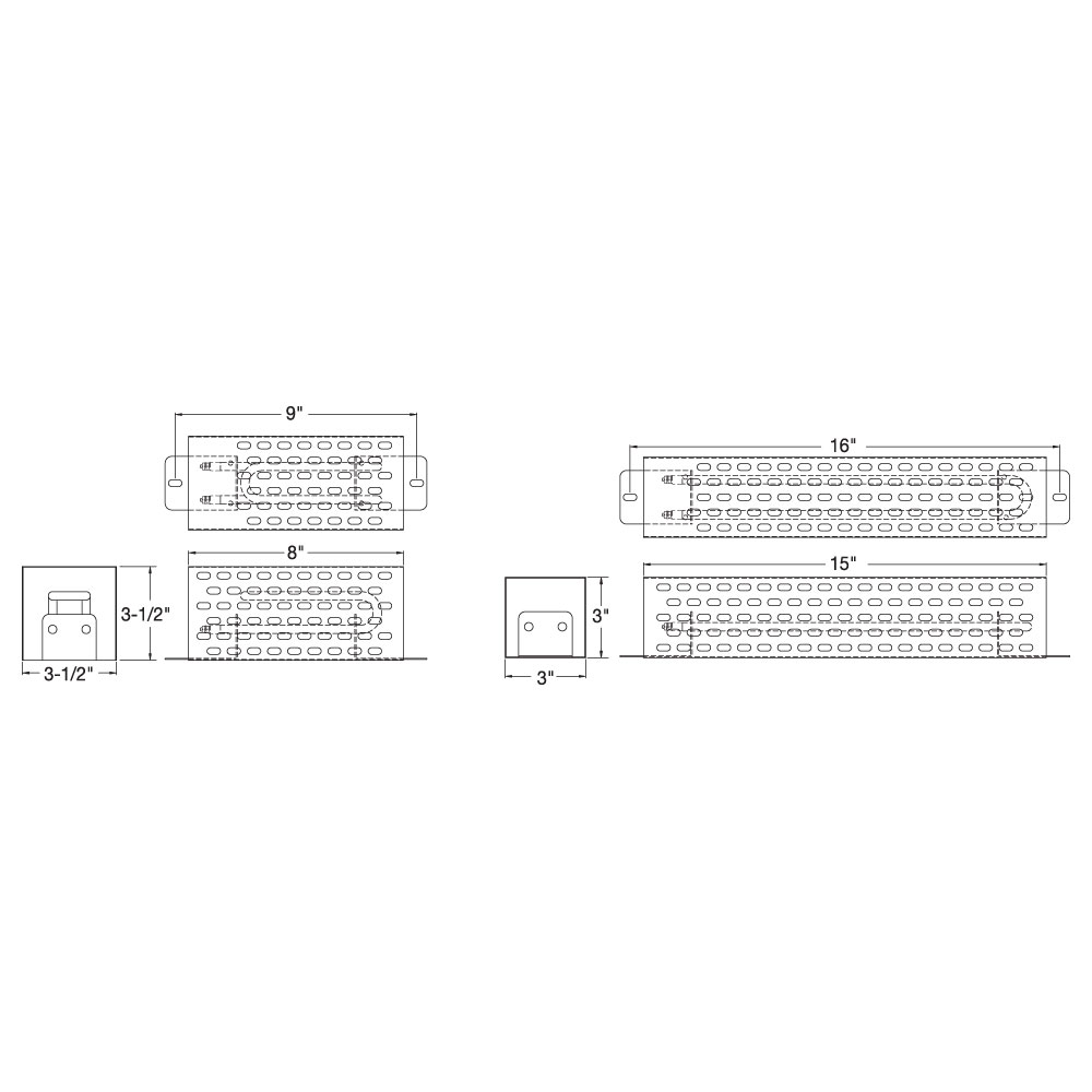 - Dimensions Listed are for Heater and Bracket; Actual Heater Width is 1/2″ Less