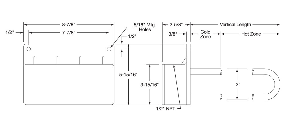 Fluoropolymer (PTFE) Nine-Element Over-the-Side Heater (TMT08)