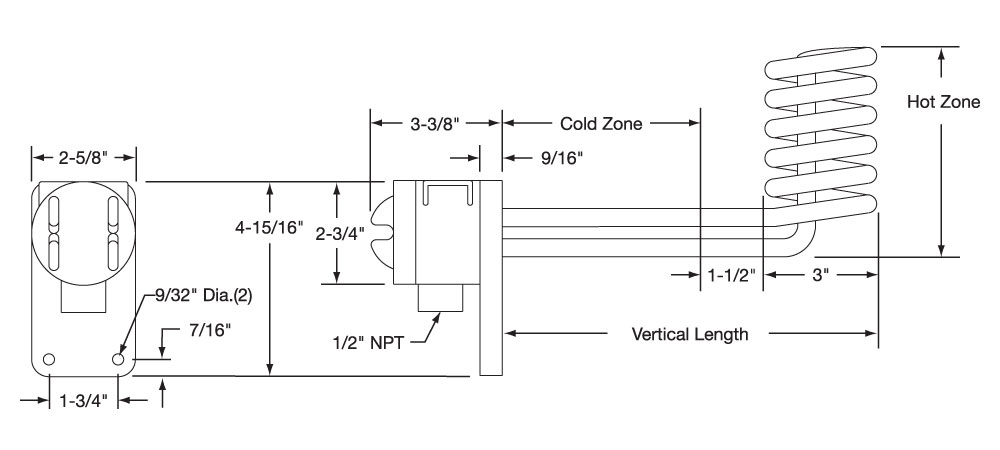- Longer and shorter vertical lengths available; consult Tempco