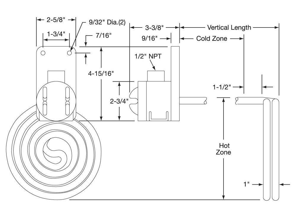 - Longer and shorter vertical lengths available; consult Tempco